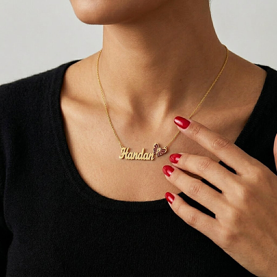 Kendinizi veya sevdiklerinizi şımartmanın en zarif yolu olan bu Kişiye Özel İsimli Kelebek Kolye, estetik tasarımıyla stilinize sofistike bir dokunuş katıyor. İnce işçilikle hazırlanan kolye, isminizin gücünü doğanın sembolü olan kelebeğin özgürlüğüyle birleştiriyor. Özel tasarım, Zarif el yazısı fontuyla hazırlanan isim detayı ve hemen yanına konumlandırılmış canlı kırmızı mine işlemeli kelebek figürü. Yüksek kalite, Parlak altın kaplama yüzeyi sayesinde uzun süre ışıltısını korur ve her türlü kıyafetle mükemmel uyum sağlar. Ürün, e-ticaret gönderimlerine uygun şık ve koruyucu takı kutusunda, hediye edilmeye hazır şekilde gönderilmektedir.