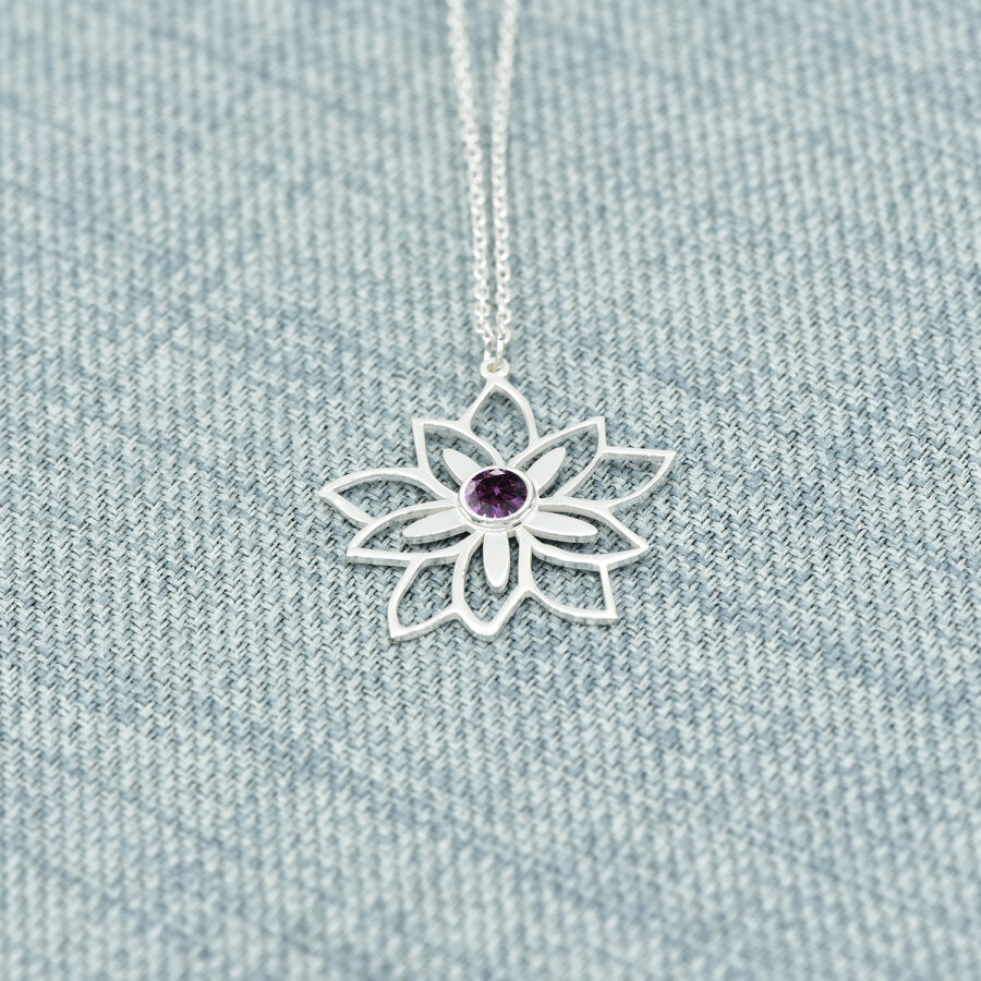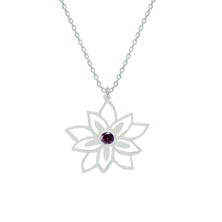 Gümüş Doğum Taşlı Lotus Çiçeği Kolye